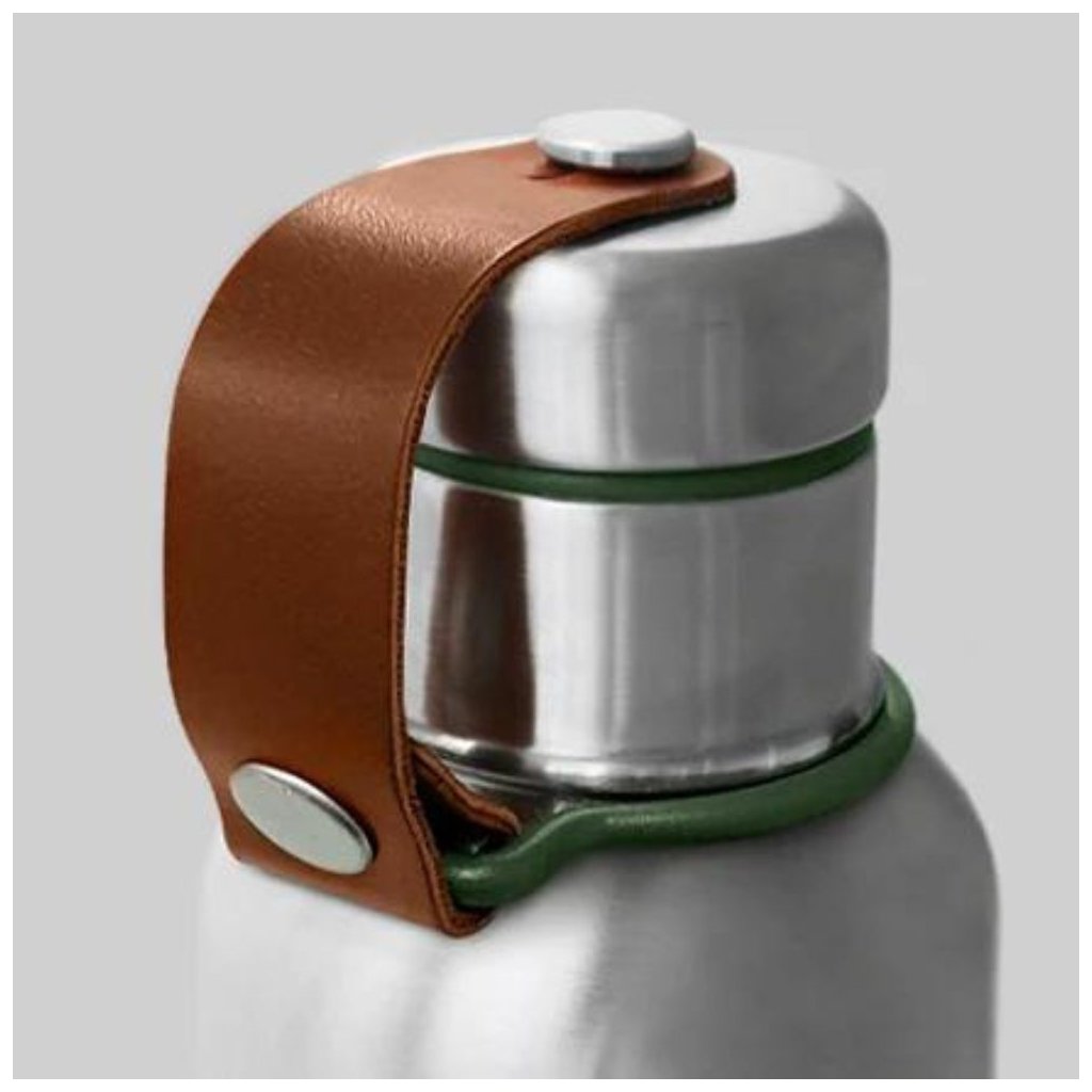 - stiilne kunstnahast rihm hoiab korki ja on ühtlasi käepidemeks
