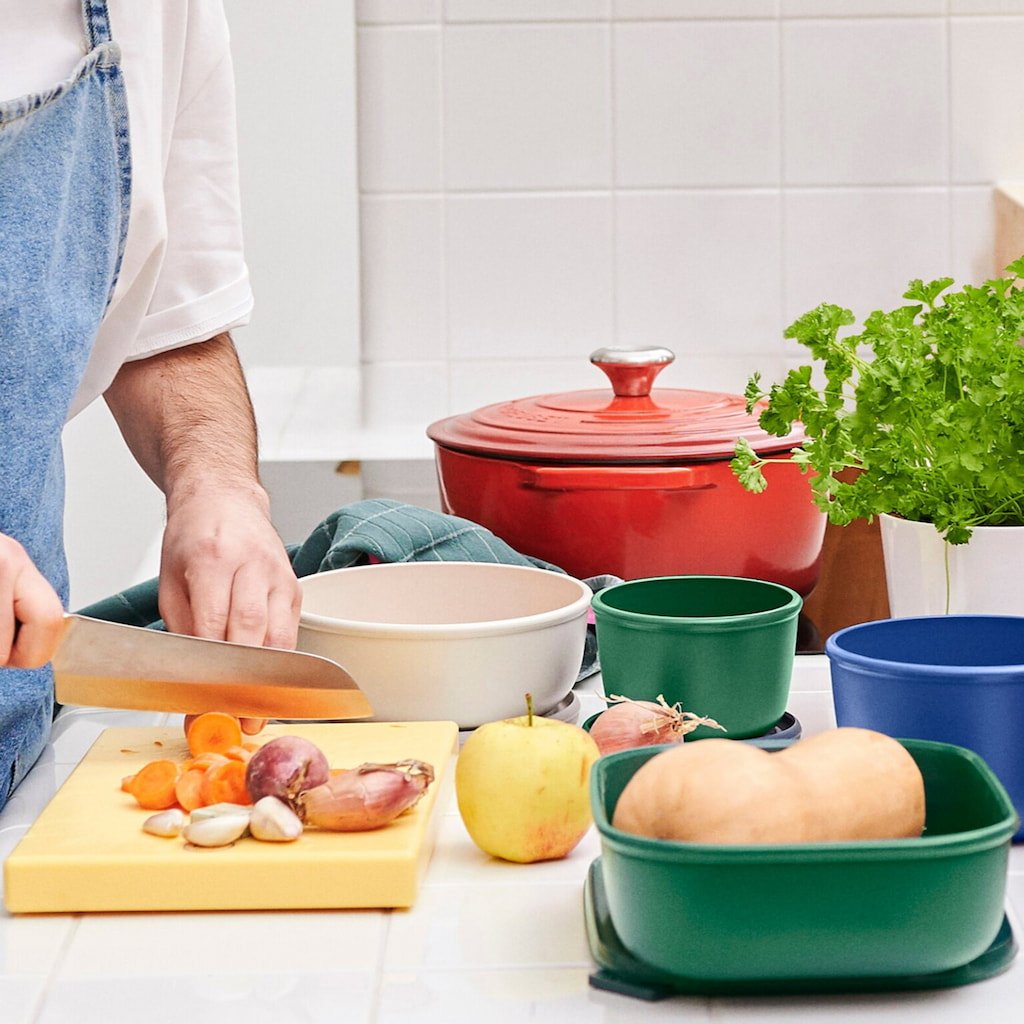 - tänu oma praktilisele kujule kasutab see külmkapis või sügavkülmikus olevat ruumi tõhusamalt kui ümmargused konteinerid