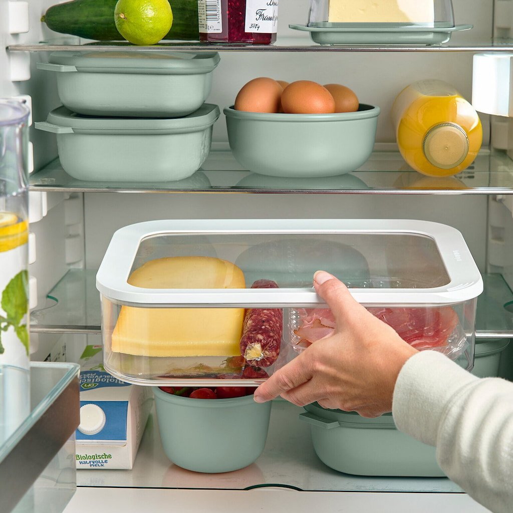- tänu oma praktilisele kujule kasutab see külmkapis või sügavkülmikus olevat ruumi tõhusamalt kui ümmargused konteinerid