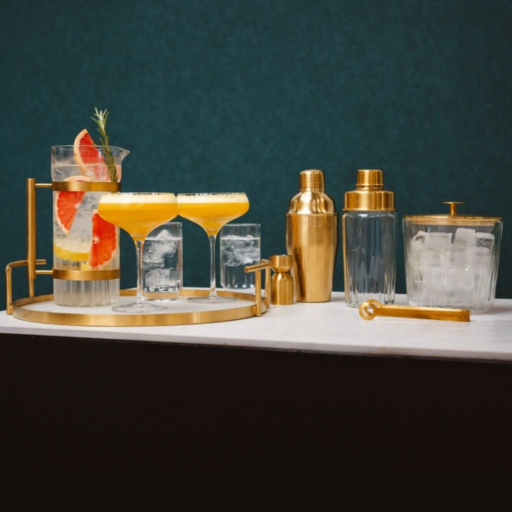 - Materjal: borosilikaat klaas ja roostevaba teras kuldse viimistlusega