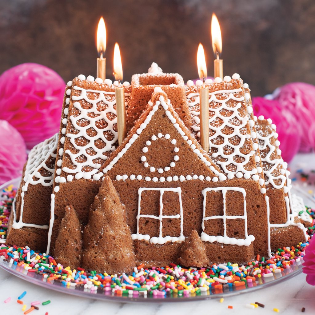 Hõbedane piparkoogivorm Gingerbread House Bundt® piparkoogimaja Ameerika brändi Holiday kollektsioonist Nordic Ware on valmistatud kvaliteetsest, tahkest alumiiniumist, millel on mittekleepuv kate. Mis oleksid jõulud ilma muinasjuttude ja piparkoogimajata? Olenemata sellest, kas teile meeldivad rootsi vürtsitatud piparkoogid või šokolaadist biskviitkook, ei tohi teie kodus sel jõulupühal puududa klassikaline, detailirohke haldjaküpsis. Ebatavaline ja maitsev kingitus rõõmustab ka uue maja omanikku.