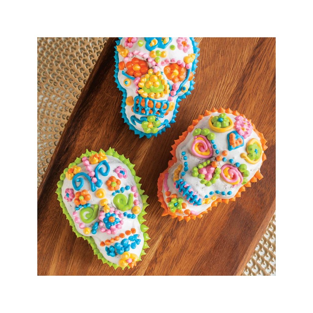 Pronksist vorm 6 Haunted Skull Bundt® biskviidikolju jaoks Ameerika brändi Nordic Ware sügisteemalisest kollektsioonist Fall Harvest on valmistatud kvaliteetsest, tahkest valatud alumiiniumist, mis on kaetud mittekleepuva kattega. Kuue ühesuguse pealae vormi keeruliste detailidega, küpseta oma lemmik muffinitainas või valage kuus skeleti pead otse šokolaadist.